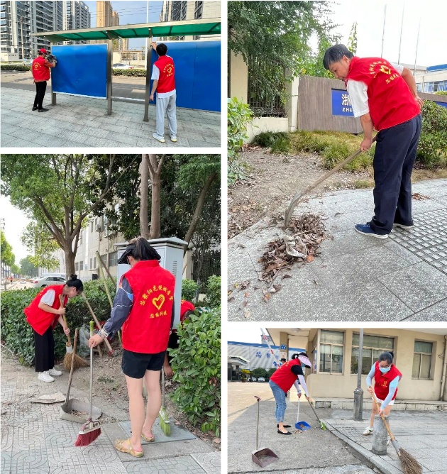 活動中,黨員志愿者們統一佩戴黨徽,身穿紅馬甲,手持掃帚等清潔工具,有條不紊地清除散落在路邊、綠化帶里的塑料袋、廢紙等廢棄物,并打掃了附近的公交站臺。